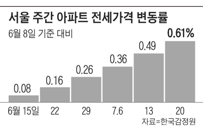이달 20일 기준 서울 아파트값(한국감정원 발표)은 일주일 사이 0.06% 올라 전주(前週·0.09%)에 이어 상승세를 이어갔다. 7주 연속으로 오름세다. 전셋값도 0.11% 올라 56주 연속 상승했다. 반(反)시장적 초고강도 규제라는 지적을 받은 6·17, 7·10 대책으로도 집값 안정은 이뤄지지 않았다. 부동산 값에 대한 내성(耐性)만 강해졌다는 지적이 나온다.
