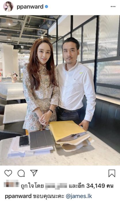 พร้อมกันนี้คุณแม่ลูกสอง ยังเขียนแคปชั่น พร้อมแท็กทนายชื่อดังว่า ขอบคุณนะคะ @james.lk