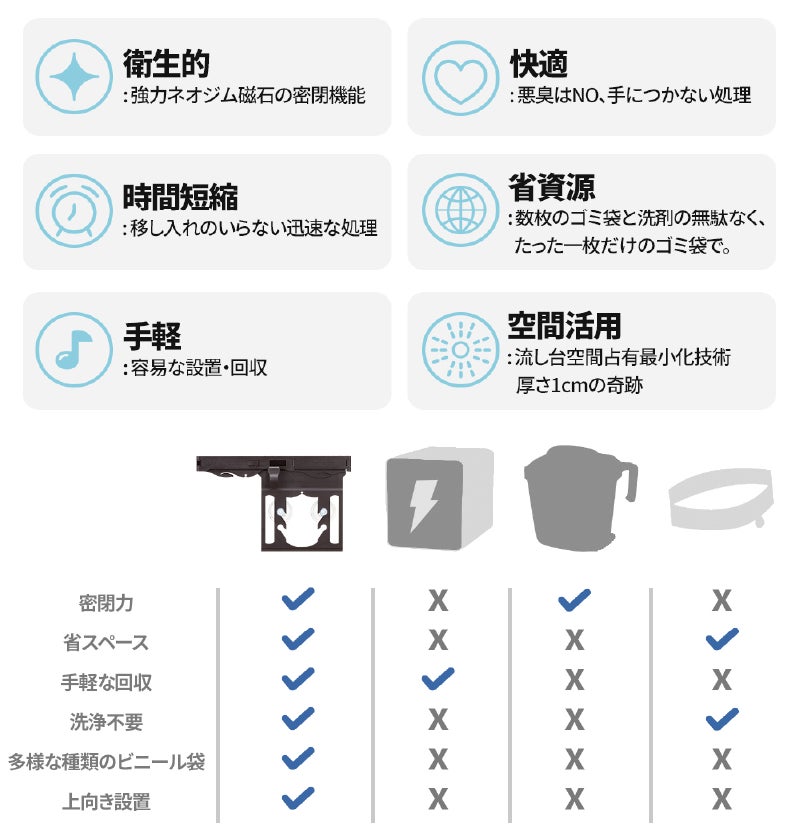 ⽣ごみを保管する容器を洗う必要がなくなり、洗剤の無駄遣いも減らします。