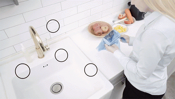 シンクの中だけでなく平らなところであればどこでも設置することができるため、コーナーでだけ使⽤可能な他の製品と⽐べてよりポータブルな製品です。